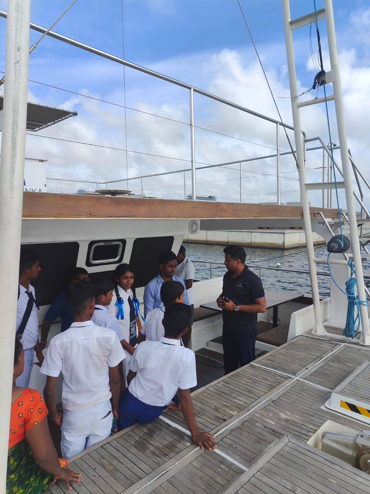 Sail Lanka Charter hosted 65 students of Mullativu Tamil Viyalaya at the Port City on 9th September. Students were on a education tour in Colombo. They were welcomed by the Sail Lanka staff. Pradeep Shanker the Operation Manager of Sail Lanka conducted a briefing about the company and services we provide to supplement the tourism in Sri Lanka. They were given an opportunity visit our boats and get a first hand experience. They were treated with refreshments at the end of the visit. This initiative provided students of a school in North to understand and widen their knowledge on maritime tourism conducts in Sri Lanka.