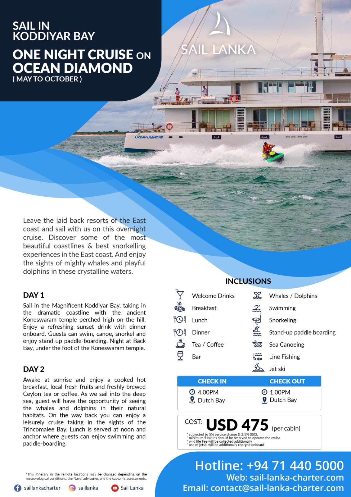The South sailing cruise offers you an unforgettable sea-cation escape, from waking up to the view of sunrise and the opportunity to experience water activities in the tropical bay of Weligama.